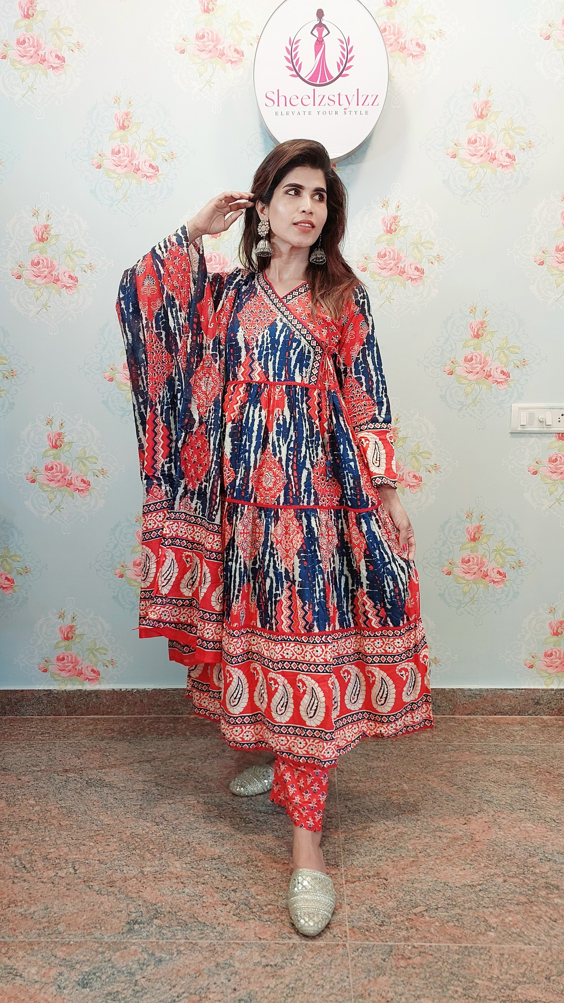 Anagragh neck pattern heavy flared kurti with palazzo straight pant
